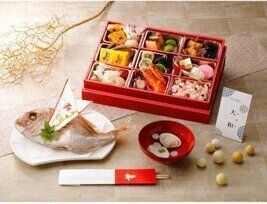 縁起ものをたくさん詰め込んだお重のほか、尾頭付き焼鯛や、希少な国産蛤のお吸い物、こだわりのもち米を使ったお赤飯などセット内容も充実。名入れ立札つきで記念写真にもぴったり。