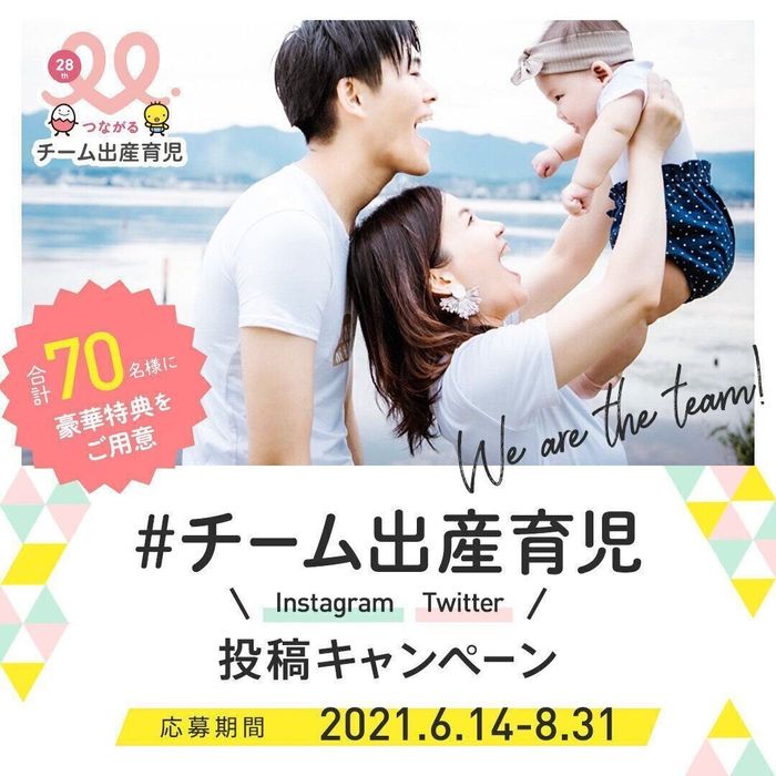 「たまひよ」では「つながる、チーム出産育児」をテーマに、創刊28周年キャンペーンを実施中です。6月14日より、「#チーム出産育児Instagram・Twitter投稿キャンペーン」を開催。#チーム出産育児にまつわる投稿を大募集!合計70名の方に豪華特典もご用意しています。