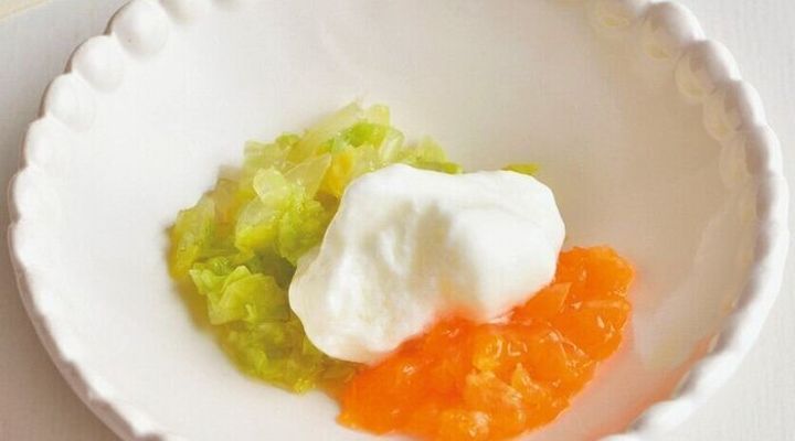 白菜とみかんのヨーグルトのせ (離乳中期 7~8カ月ごろ)