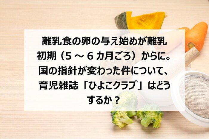 離乳食の卵の与え始めが離乳 初期 (5〜6カ月ごろ)からに。国の指針が変わった件について、育児雑誌「ひよこクラブ」はどうするか?