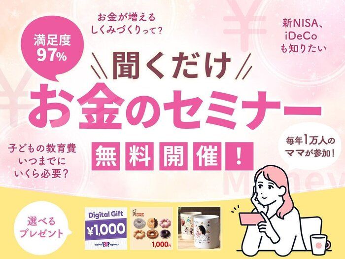 子育てママ向け「聞くだけ」お金のセミナー開催♪教育資金から上手な備え方、おトクな制度まで。今さら聞けないお金のはなしが満載