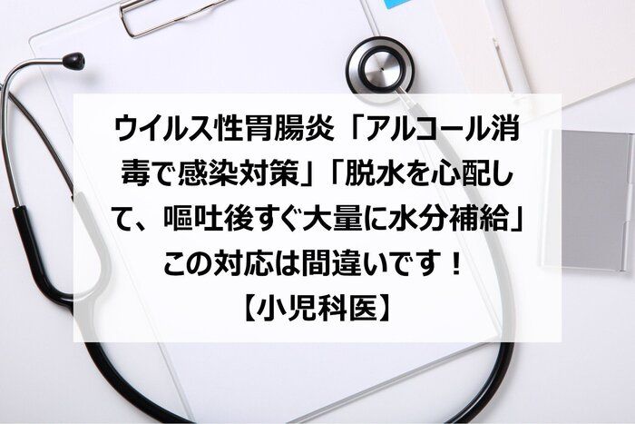 ウイルス性胃腸炎「アルコール消毒で感染対策」「脱水を心配して、嘔吐後すぐ大量に水分補給」この対応は間違いです!【小児科医】